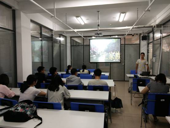 下午4:30,班会正式开始。首先由班里少数民族同学一一上台介绍自己的民族特色和文化,有土家族、壮族、瑶族的同学。土家族的杨涵同学向大家介绍了楼房特色、食物以及一些风俗。他说:“大家住的都是吊脚楼,而饮食主要是酸辣为主。苞谷饭是土家族食物的一大特色,玉米加上大米,特别的香。而且说到特色食物,就不得不提土家族的腊肉,在快要春节的时候,几乎都会开始烤腊肉,特别的好吃。”最特别的节日就是过赶年,也就是农历二十八过年,这个由来有很多种,最正宗的是土家族人为了保卫边疆,在外征战多年,快要过年时回了家,但是又接到紧急任务,必须在大年初一出发去往战场,所以大家决定提前把年过了,然后奔赴战场,继续保家卫国!最后他还介绍了土家族的舞蹈,最有代表性的是摆手舞和花灯舞,这两种都已经具有一定的成就了。壮族的赖荣基同学直接向大家分享了壮族最著名的电影《刘三姐》,通过视频的方式向大家介绍壮族的特色。同学们都被视频吸引到了,看的津津有味。